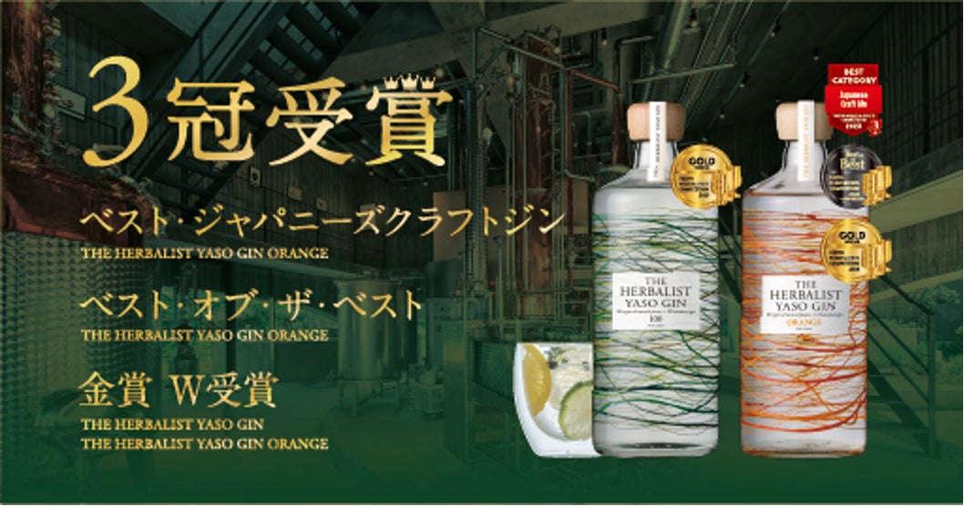 製品のひとつである「THE HERBALIST YASO GIN ORANGE」は、アジア最大級の酒類品評会『TWSC 2023』において金賞受賞、洋酒部門の特別賞である『ベスト・カテゴリー』賞の『ベスト・ジャパニーズクラフトジン』の受賞に続き、洋酒部門のジャパニーズジン部門で『TWSC2023』全体の最高位である『ベスト・オブ・ザ・ベスト』を受賞しています。